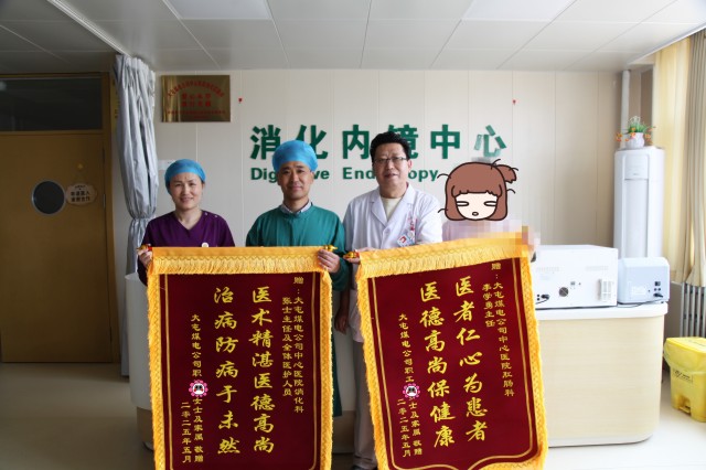 5月28日上午,46歲的張女士踏入大屯煤電公司中心醫院的胃鏡室,親手將兩面熠熠生輝的錦旗分別遞給了李學(xué)勇和張士?jì)晌会t生。她緊緊握住醫生們的手,滿(mǎn)懷感激地連聲說(shuō)道:“謝謝!謝謝你們兩位,還有你們的團隊!我真是太幸運了,能遇到你們,在做胃腸鏡檢查時(shí)及時(shí)發(fā)現早期病變,…