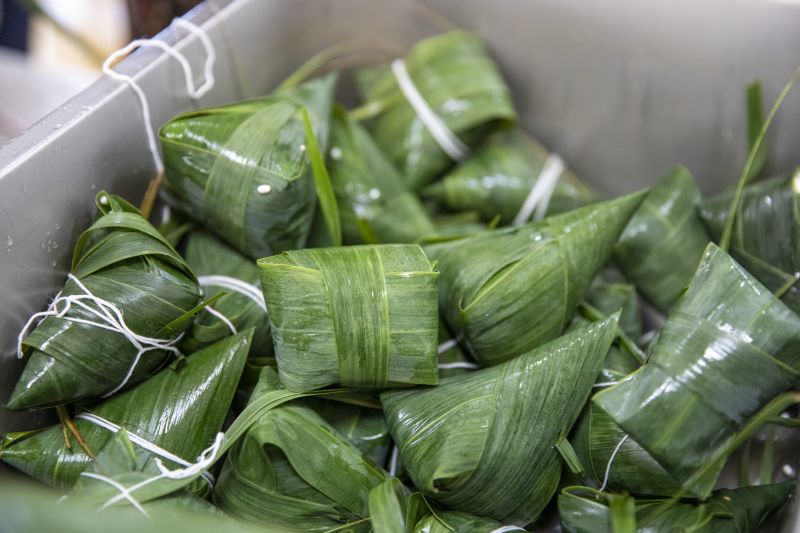 當天一早,集團公司工會(huì )做好了準備工作,工作臺上擺放著(zhù)糯米、粽葉和各種餡料,參加活動(dòng)的職工絡(luò )繹不絕,大家有的動(dòng)作嫻熟,揉制糯米、包裹粽葉、添入糯米餡料、壓緊實(shí)、封口、扎捆,三兩下一個(gè)精美的粽子就呈現在眼前。有的略顯生疏,跟著(zhù)有經(jīng)驗的同事分步驟學(xué)習,仔細研究,細致雕琢,每當成功包出一個(gè),臉上就洋溢起幸福的笑容?;顒?dòng)中,大家互相交流著(zhù)心得和經(jīng)驗,分享著(zhù)彼此的喜悅和成就,其樂(lè )融融。