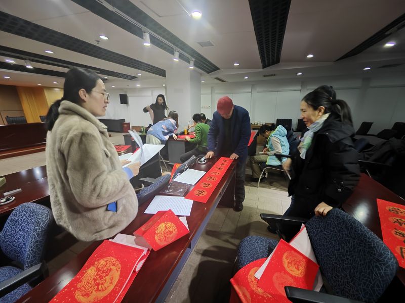 2月7日,“套圈”納福、送春聯(lián)送祝?;顒?dòng)在集團公司12樓舉行。套圈現場(chǎng),大家站定、瞄準、拋擲,看似簡(jiǎn)單的動(dòng)作帶來(lái)了精彩的比拼,每個(gè)精準的飛圈都會(huì )引來(lái)同事們的陣陣喝彩,圈中了獎品的同時(shí),也迎來(lái)了歡聲笑語(yǔ)。無(wú)聯(lián)不成春,有聯(lián)春更濃?!褒堯v盛世千家喜,春滿(mǎn)神州萬(wàn)物榮”、“玉兔辭年傳吉利,金龍賀歲保平安”、“玉龍飛舞送吉祥,瑞氣盈門(mén)賀新春”,一幅幅春聯(lián)融入了新春的美好祝福。職工群眾們拿到寫(xiě)滿(mǎn)祝福的春聯(lián)時(shí),喜悅之情溢于言表。
