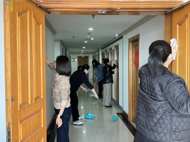 一大早,女職工們帶著(zhù)掃帚簸箕、抹布等勞動(dòng)工具,迅速投入到各個(gè)區域,掃地、拖地、整理雜物、歸置物品,大家齊心協(xié)力,干勁兒十足,分工明確,配合默契,熱情高漲,樂(lè )在其中,共同努力營(yíng)造了整潔、舒適的工作環(huán)境。女職工展現出了她們團結合作、積極向上的風(fēng)采。