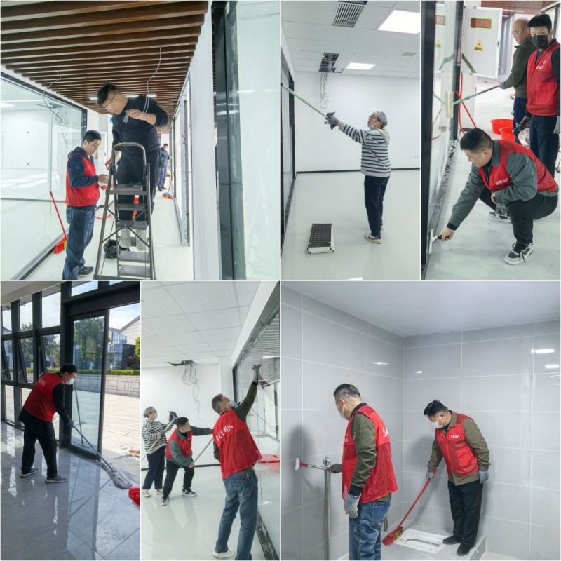 “支部建在項目上、黨旗插在工地上”。國泰地產(chǎn)黨支部始終堅持黨建品牌與工程項目深度融合,項目在哪里黨員先鋒隊就在哪里。到達活動(dòng)現場(chǎng)后,黨員先鋒隊成員和志愿者們主動(dòng)拿起刮刀、塵推、地刷、掃把等10余件清潔工具,按照小組分工協(xié)作,清潔地面、清掃垃圾、擦拭玻璃,井然有序干起來(lái),有的人頭發(fā)里沾滿(mǎn)了灰塵,有的人臉上掛滿(mǎn)了汗珠,有的人汗水濕透了衣衫。大家不嫌臟、不嫌累,熱情高漲,紛紛以為企業(yè)降本增效為榮,樂(lè )在其中。