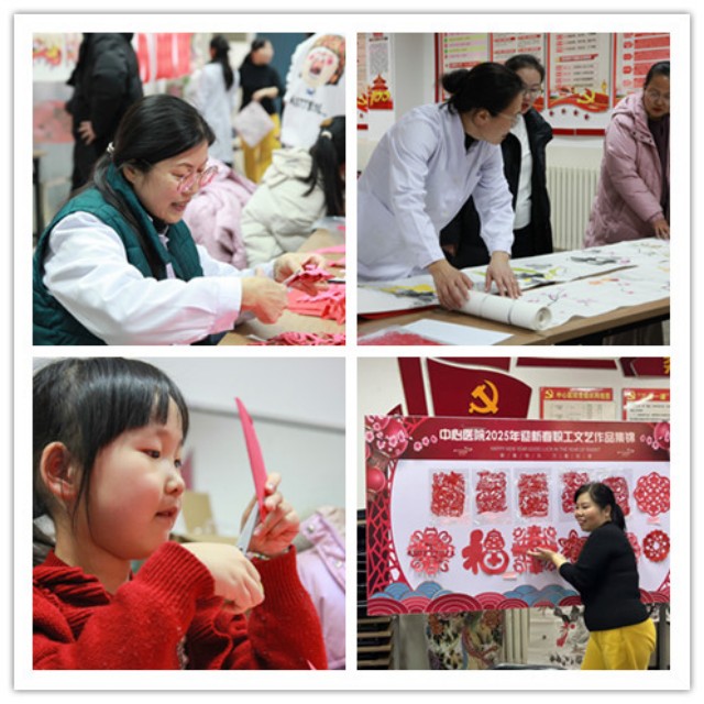 往大廳內部走去,便來(lái)到了第二個(gè)區域,這里正在進(jìn)行剪紙、繪畫(huà)和書(shū)法才藝展示。參與活動(dòng)的不僅有職工,還有職工家屬及孩子們。他們個(gè)個(gè)技藝精湛,穩穩地坐在座位上,手持剪刀、畫(huà)筆、毛筆等工具,動(dòng)作嫻熟,如行云流水般。片刻之間,一幅幅精美的雙魚(yú)戲珠、春回大地、彩蝶雙飛等剪紙,一幅幅山水花鳥(niǎo)等畫(huà)作,一個(gè)個(gè)形態(tài)各異的福字便呈現在大家眼前,引得眾人陣陣驚嘆。