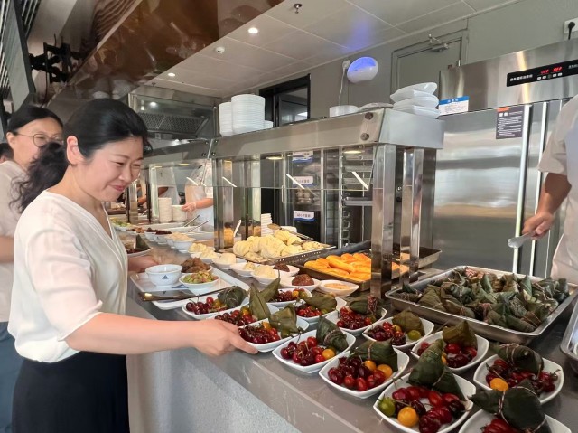 次日中午,集團工會(huì )在員工餐廳精心準備了色彩繽紛的水果拼盤(pán)、香甜軟糯的蜜棗粽子,為集團員工送上節日祝福。大家圍坐在一起,一邊分享昨日包粽的趣事,一邊品嘗蜜粽鮮果,食堂里洋溢著(zhù)歡聲笑語(yǔ)。
