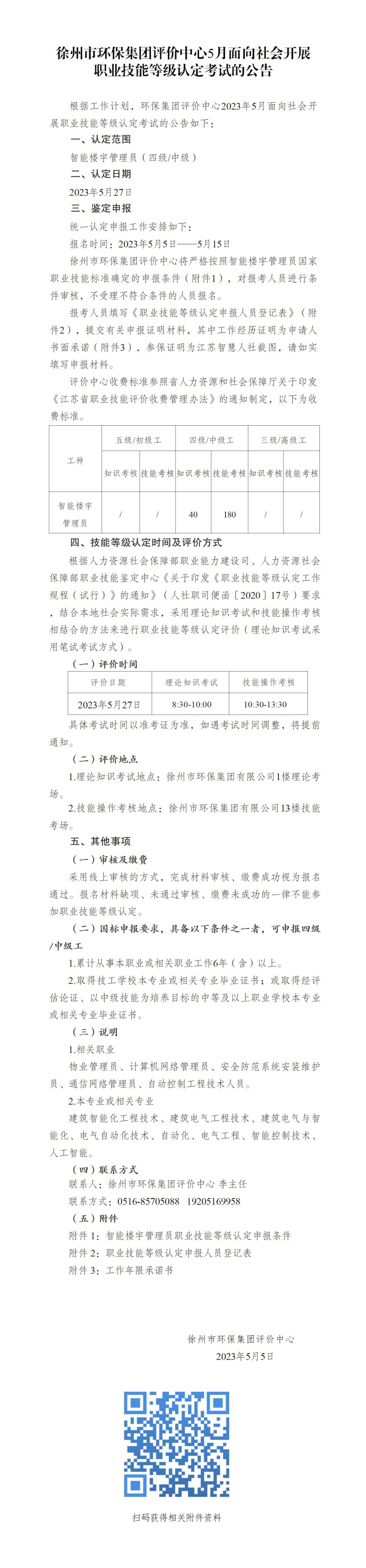 考試公告|徐州市環(huán)保集團評價(jià)中心5月面向社會(huì )開(kāi)展職業(yè)技能等級認定考試的公告