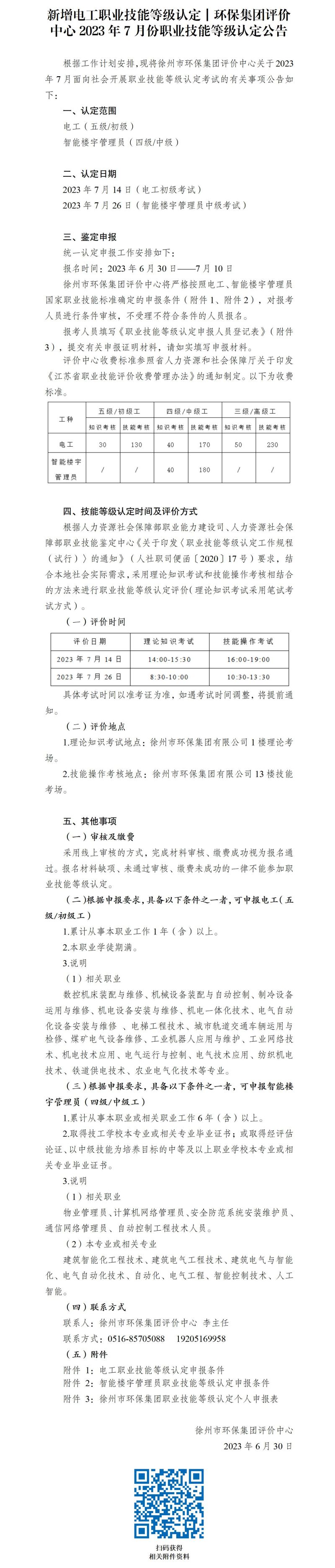 新增電工職業(yè)技能等級認定 | 環(huán)保集團評價(jià)中心2023年7月份職業(yè)技能等級認定公告