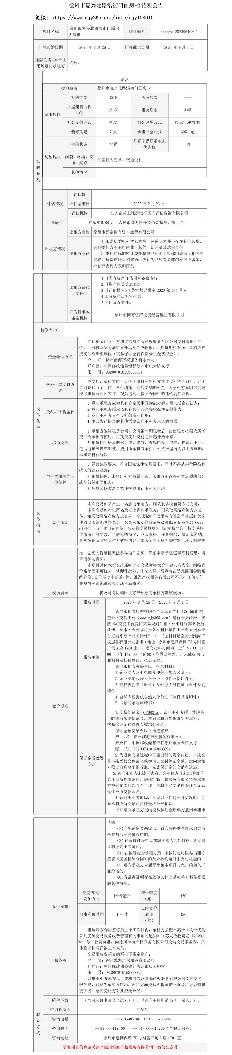 徐州市復興北路沿街門(mén)面房-2招租公告