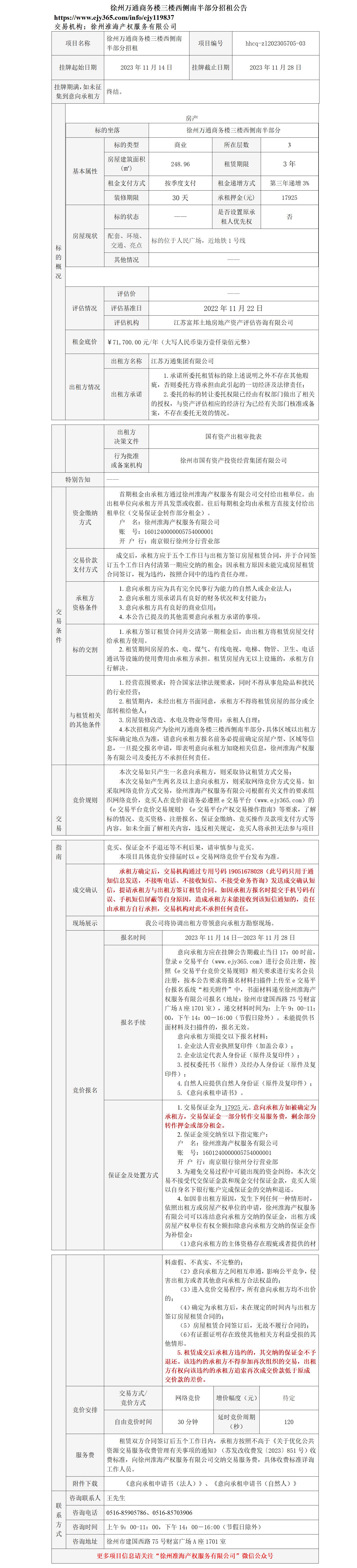 徐州萬(wàn)通商務(wù)樓三樓西側南半部分招租公告