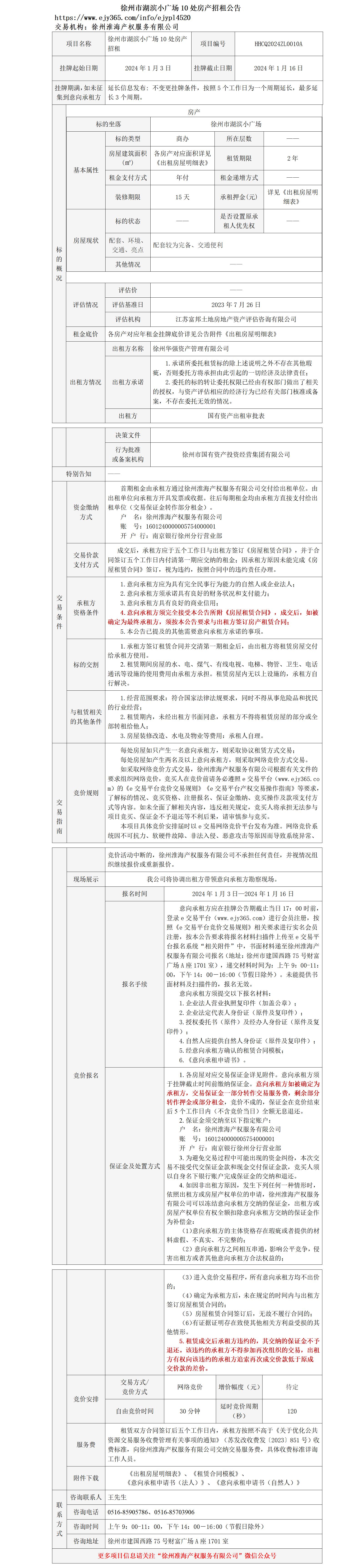 徐州市湖濱小廣場(chǎng)10處房產(chǎn)招租公告