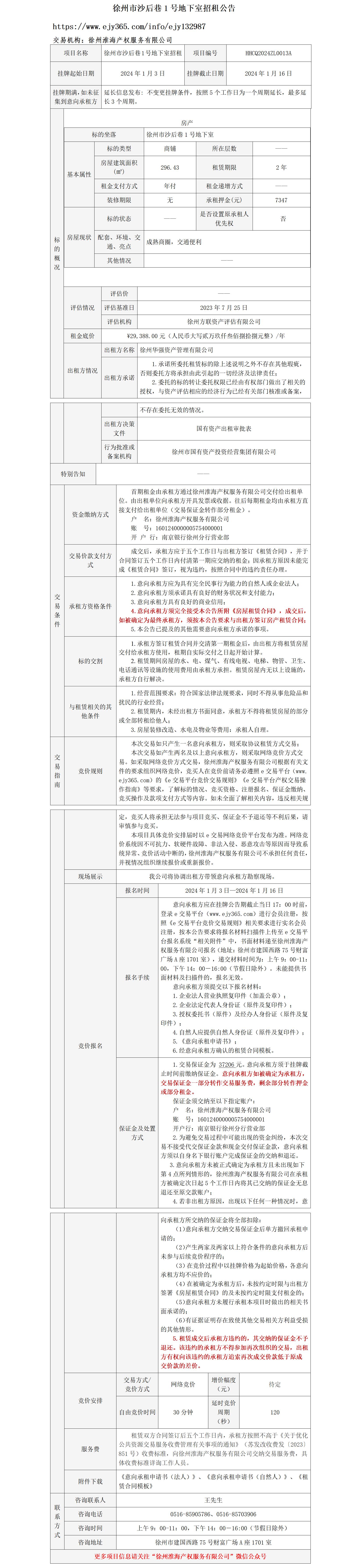 徐州市沙后巷1號地下室招租公告