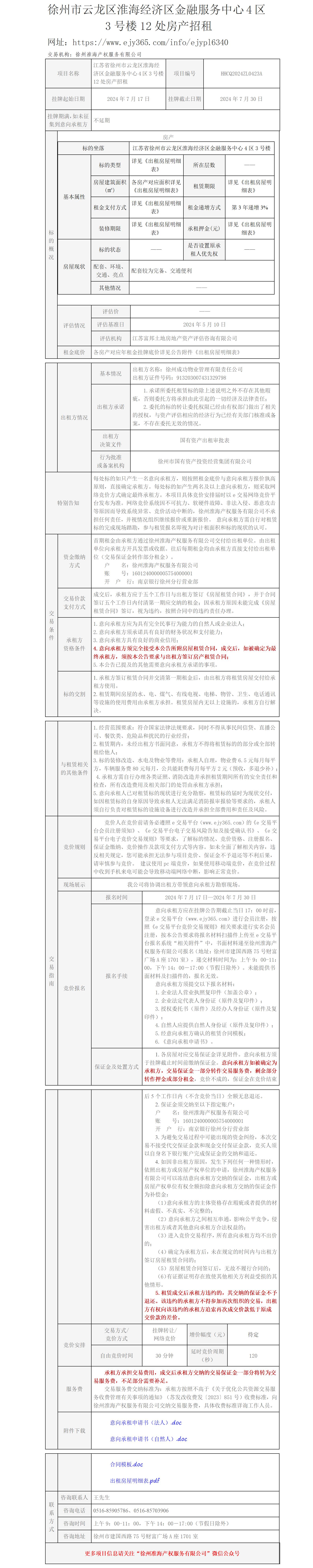 徐州市云龍區淮海經(jīng)濟區金融服務(wù)中心4區3號樓12處房產(chǎn)招租公告