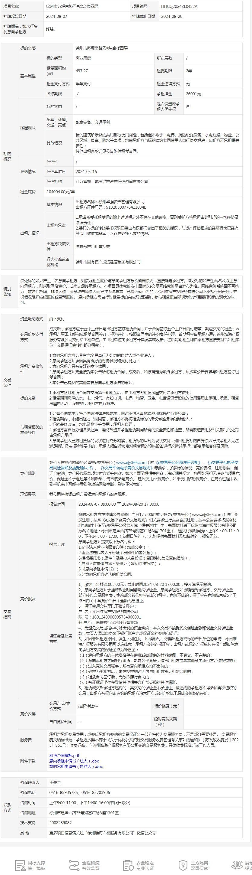 徐州市蘇堤南路乙#綜合樓四層招租公告
