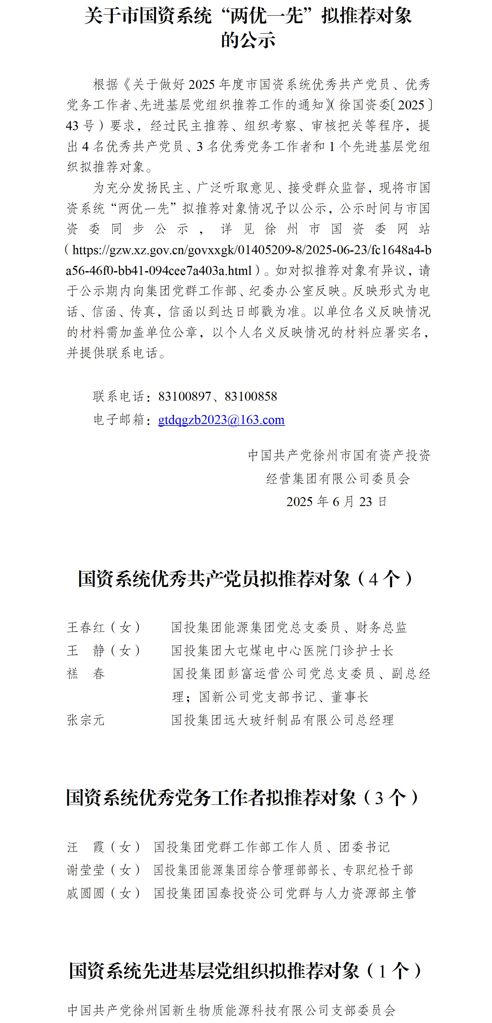 關(guān)于市國資系統“兩優(yōu)一先”擬推薦對象的公示