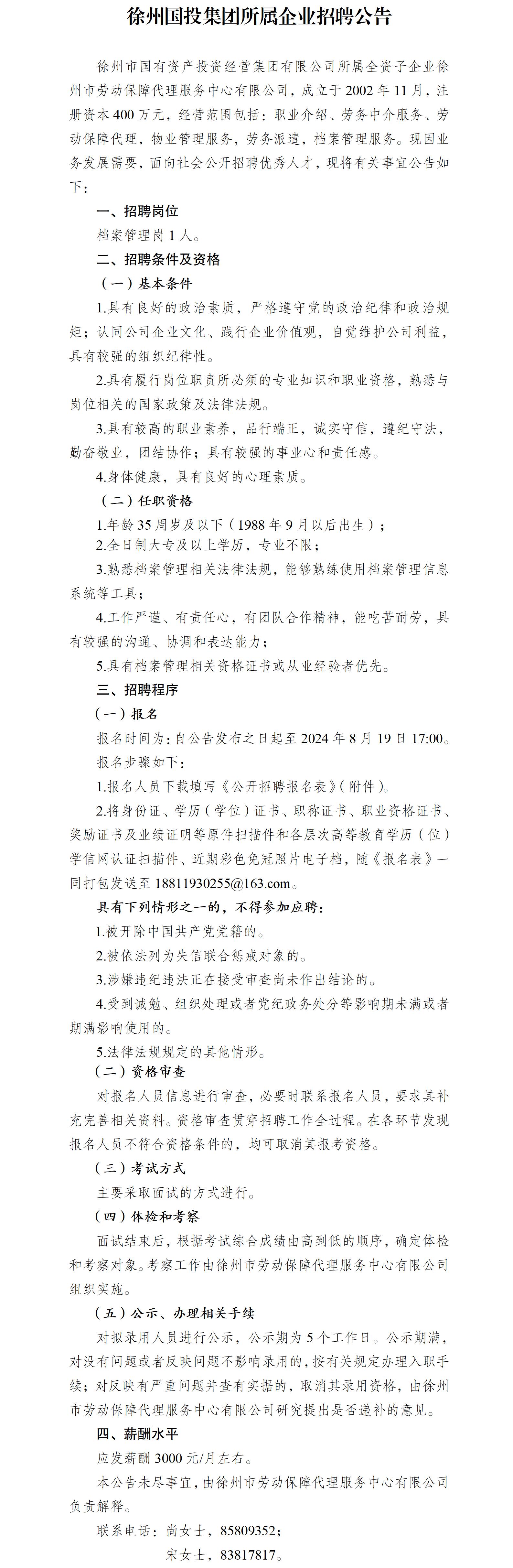 徐州市國有資產(chǎn)投資經(jīng)營(yíng)集團有限公司所屬企業(yè)公開(kāi)招聘公告