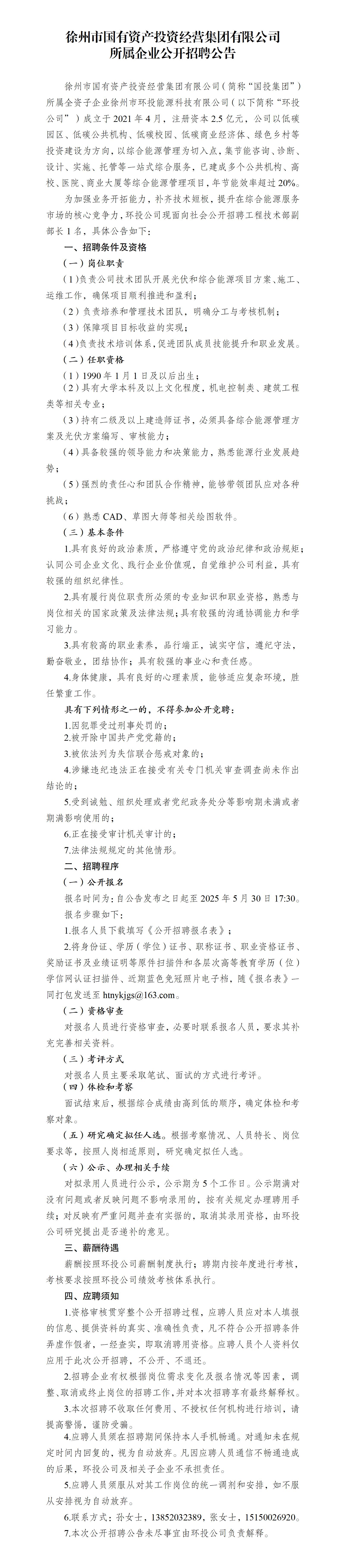 徐州市國有資產(chǎn)投資經(jīng)營(yíng)集團有限公司所屬企業(yè)公開(kāi)招聘公告(環(huán)投公司)