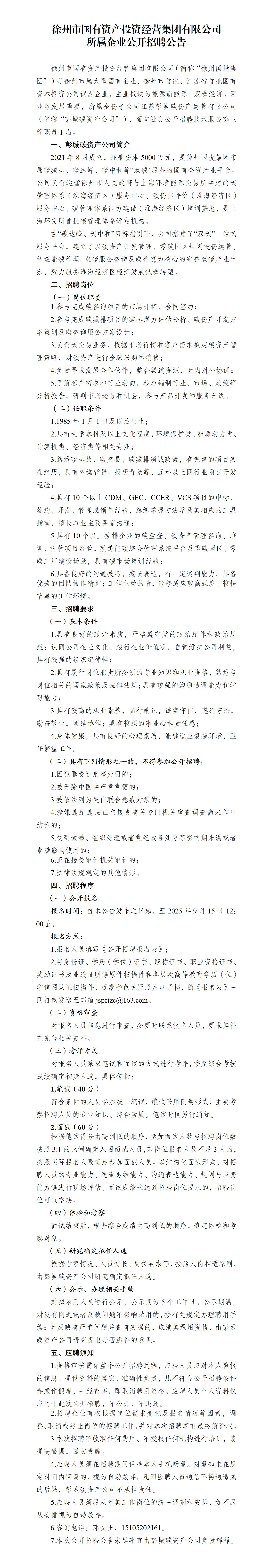 江蘇彭城碳資產(chǎn)運營(yíng)有限公司公開(kāi)招聘報名表