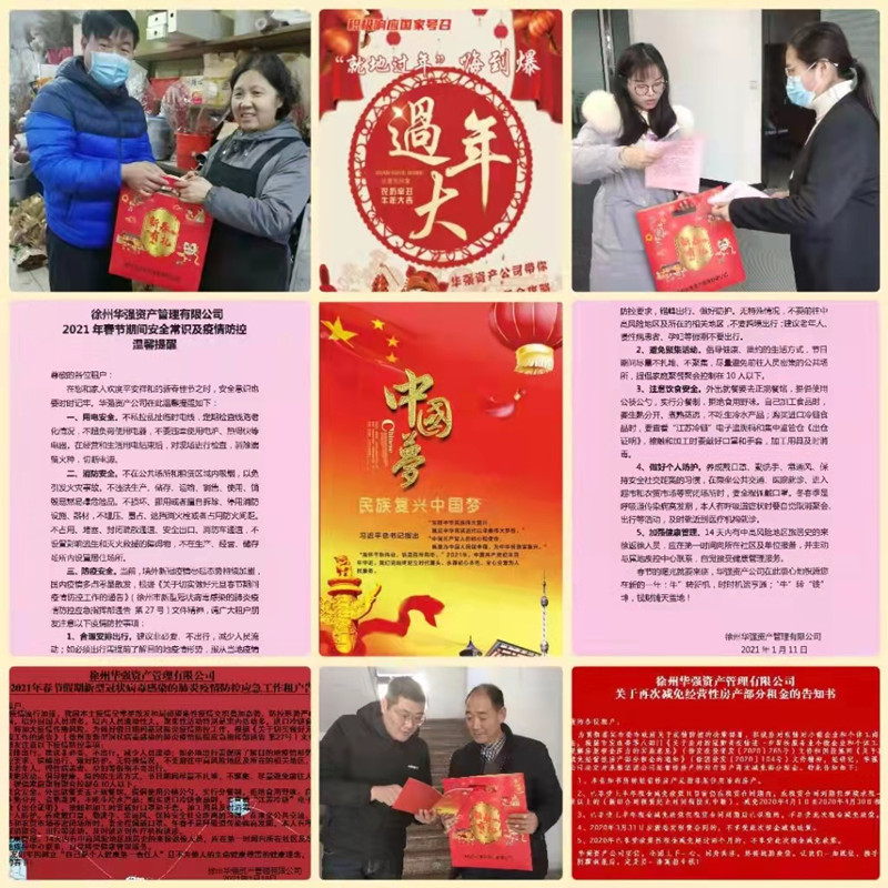 冬夏交替,歲月流轉。即將過(guò)去的2020年是眾志成城、全民抗疫的非常之年,也是華強資產(chǎn)公司與全體承租戶(hù)共克時(shí)艱、共同成長(cháng)的一年,公司的踏浪前行離不開(kāi)租戶(hù)給予的信任、幫助和寬容。乘著(zhù)辭舊迎新的東風(fēng),在新春佳節來(lái)臨之際,為積極響應國家衛健委和徐州市政府“就地過(guò)年”行…