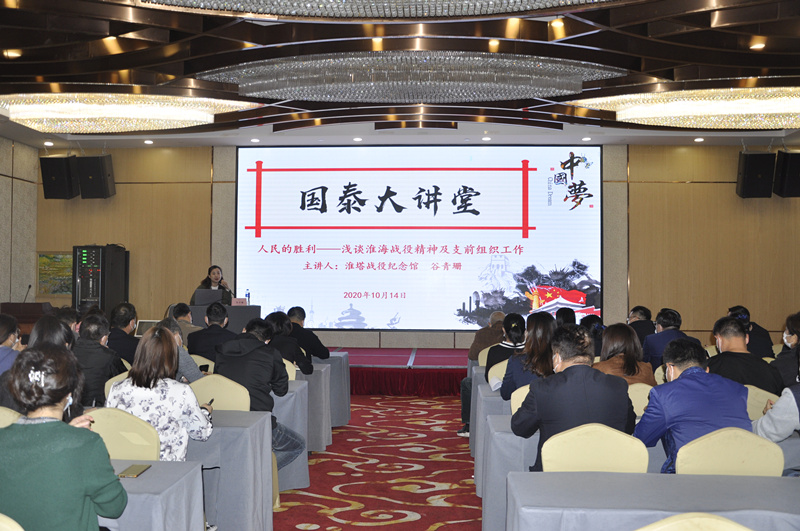 為持續深入開(kāi)展習近平新時(shí)代中國特色社會(huì )主義思想學(xué)習教育,全面落實(shí)《國泰投資公司建設學(xué)習型企業(yè)實(shí)施方案》文件精神,培養企業(yè)核心競爭力,促進(jìn)國泰投資公司轉型發(fā)展。近日,國泰投資開(kāi)展“國泰大講堂”活動(dòng),第一期由機關(guān)黨支部承辦,特邀淮海戰役紀念館谷青珊老師授課。國…