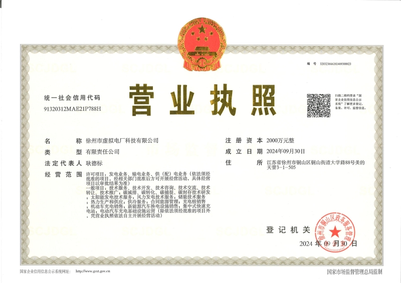 徐州市虛擬電廠(chǎng)科技有限公司注冊設立