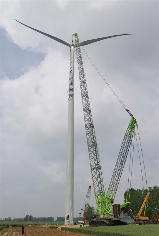 在吊裝作業(yè)過(guò)程中,國湖公司及各參建單位通力配合、密切協(xié)作、無(wú)縫對接,全力克服場(chǎng)地空間小、勞動(dòng)強度大、設備運輸難、現場(chǎng)風(fēng)速大等多種困難,嚴格按照風(fēng)機吊裝的規范及工藝要求,有序完成吊車(chē)荷載試驗,塔筒、機艙、葉輪組裝對接工作,經(jīng)專(zhuān)業(yè)力學(xué)驗收,確保各項安全指標合格后,葉輪高空吊裝作業(yè)一次成功。