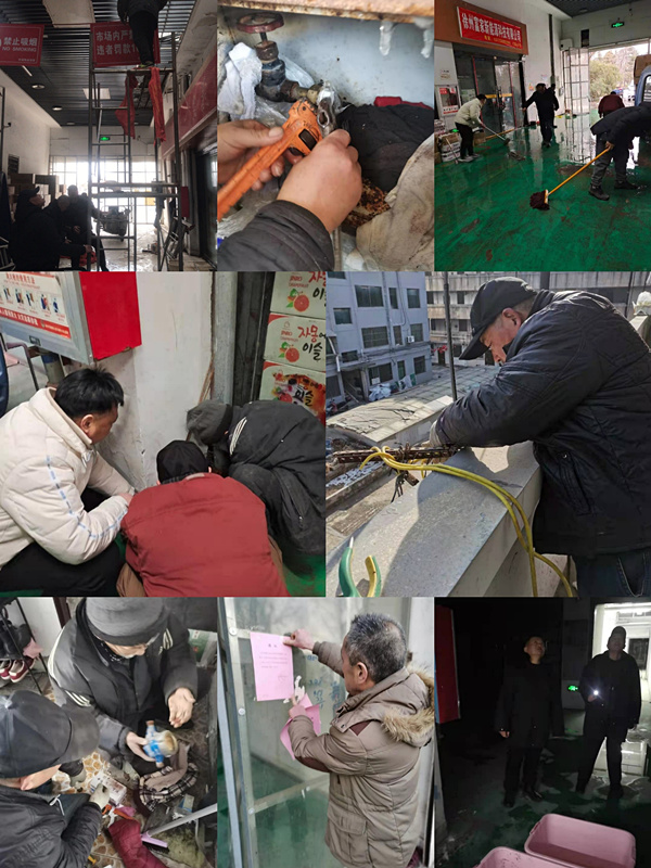 盡管市場(chǎng)已提前做好各項管線(xiàn)保溫措施,同時(shí)多次下發(fā)通知提醒業(yè)戶(hù)注意管線(xiàn)防寒保暖。但是在1月6日至11日極寒天氣下,還是出現了眾多管線(xiàn)凍結堵塞,水表爆裂等情況。市場(chǎng)服務(wù)熱線(xiàn)電話(huà)不斷,報修單呈數倍增長(cháng)。商貿公司黨支部迅速啟動(dòng)應急預案,從支部書(shū)記到普通黨員全員加入搶修隊伍,確保爆裂管線(xiàn)第一時(shí)間得到搶修,業(yè)主報修二小時(shí)內得到維修。黨員隊伍和資產(chǎn)管理部全體同志,頂著(zhù)嚴寒加快搶修進(jìn)度。在滴水成冰的寒冬里,他們團結協(xié)作、爭分奪秒,與嚴寒抗戰、與時(shí)間賽跑,高質(zhì)量地完成了搶修任務(wù),受到業(yè)主廣泛好評。