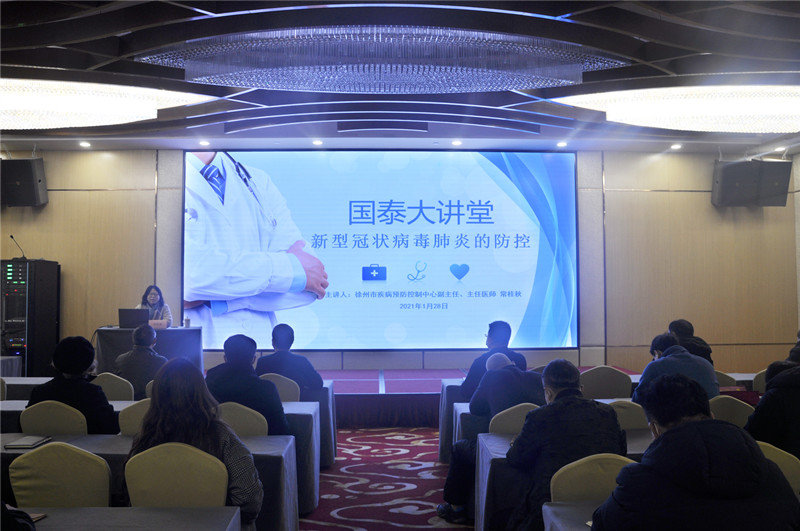 為深入學(xué)習集團公司疫情防控工作會(huì )議精神,貫徹落實(shí)《國泰投資疫情防控工作實(shí)施方案》文件要求,進(jìn)一步樹(shù)牢風(fēng)險意識,提高全體干部職工的安全防范能力。1月28日下午,機關(guān)黨支部聯(lián)合安全管理部承辦第三期“國泰大講堂”活動(dòng),特邀徐州市疾病預防控制中心副主任、主任醫師常桂秋授課。國泰投資機關(guān)支部黨員,各所屬全資、控股公司中層及以上干部代表參加活動(dòng)。