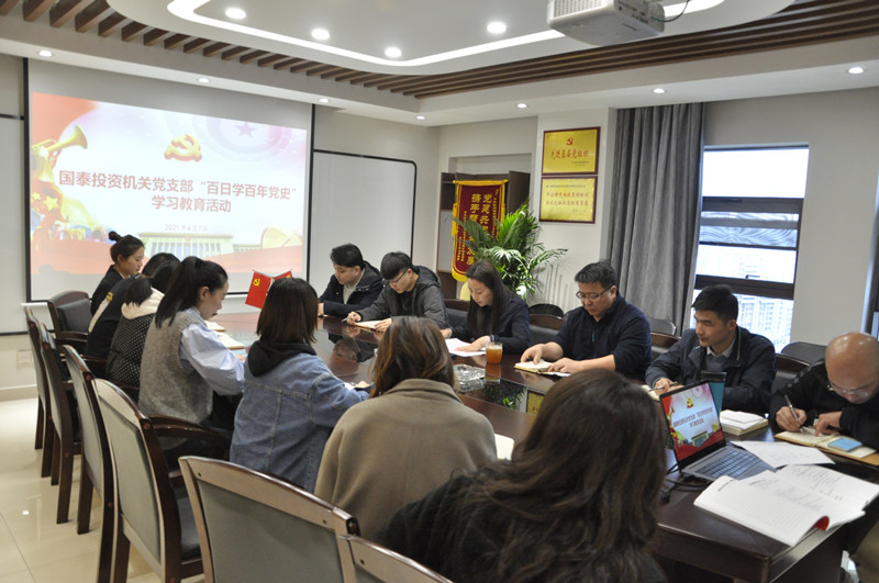 為深入學(xué)習習近平總書(shū)記在黨史學(xué)習教育動(dòng)員大會(huì )上的重要講話(huà)精神,貫徹落實(shí)集團公司黨委關(guān)于開(kāi)展“百日學(xué)百年黨史”學(xué)習教育活動(dòng)的工作部署要求,4月7日下午,國泰投資機關(guān)黨支部開(kāi)展“百日學(xué)百年黨史”專(zhuān)題學(xué)習教育活動(dòng)?;顒?dòng)由機關(guān)支部書(shū)記丁秀主持,支部全體黨員、積極分子參加會(huì )議。