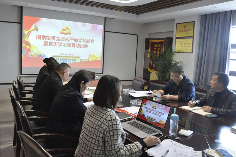 為認真貫徹落實(shí)集團公司黨史學(xué)習教育動(dòng)員大會(huì )精神,持續推進(jìn)公司全面從嚴治黨工作高質(zhì)量發(fā)展,國泰投資黨總支于4月8日召開(kāi)全面從嚴治黨專(zhuān)題暨黨史學(xué)習教育動(dòng)員工作會(huì )議。會(huì )議由國泰投資黨總支書(shū)記霍凱主持,黨總支中心組成員、各直屬黨支部書(shū)記參加會(huì )議。