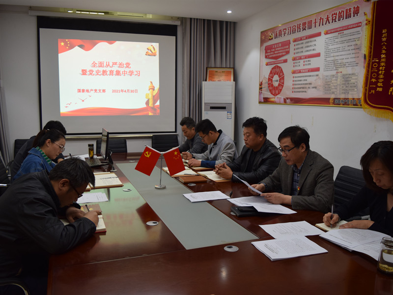 為全面貫徹集團公司黨委全面從嚴治黨工作會(huì )議精神,推進(jìn)黨史學(xué)習教育工作走深走實(shí)。4月30日上午,國泰地產(chǎn)黨支部召開(kāi)全面從嚴治黨暨黨史教育集中學(xué)習專(zhuān)題會(huì )議。會(huì )議由黨支部書(shū)記吳作峰主持,國泰地產(chǎn)黨支部全體黨員、預備黨員、入黨積極分子參加會(huì )議。