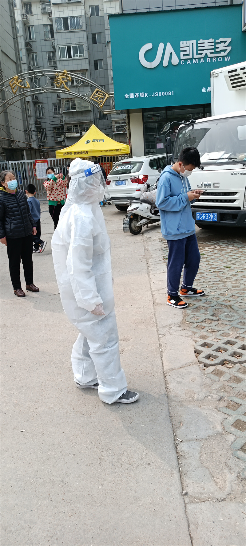 天宸公司紀檢干部袁飛——“對不起我來(lái)晚了”!受到黃碼限制,袁飛同志謹遵社區叮囑,只可外出做核酸,不允許在外逗留。雖然每天做核酸檢測,但社區屢屢拒絕了他的志愿服務(wù)請求,看著(zhù)同事們紛紛投入到志愿服務(wù)中去,身為紀檢干部的他在家里坐如針氈。終于在黃碼轉綠碼的第一天,袁飛同志不是去儲備食物、不是去看望父母,而是趕到所在社區報到。他以最快速度穿上了防疫服,從被監督保護的黃碼人員轉換為志愿者的角色,督促檢查所在小區核酸檢測應檢盡檢的情況,以及防控物資是否配備齊全等,并幫助核酸檢測群眾進(jìn)行登記及核驗兩碼。