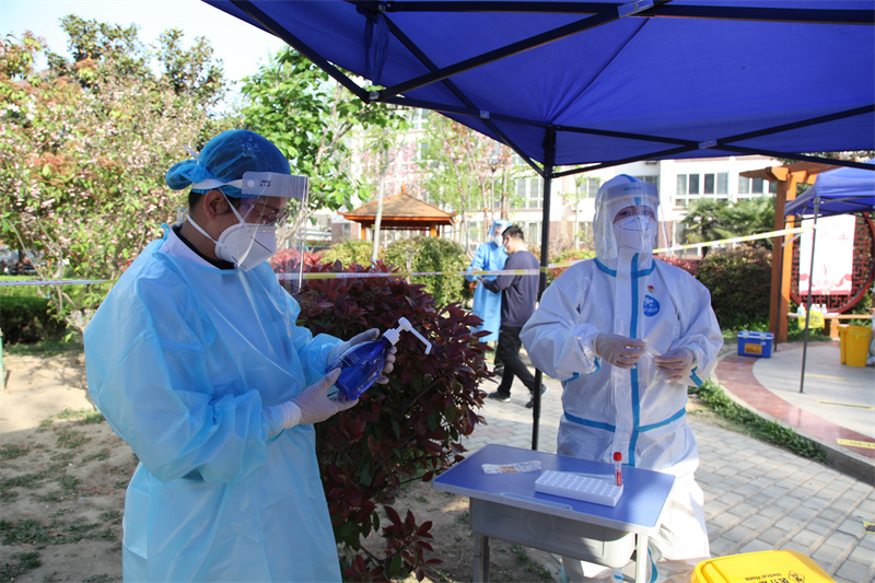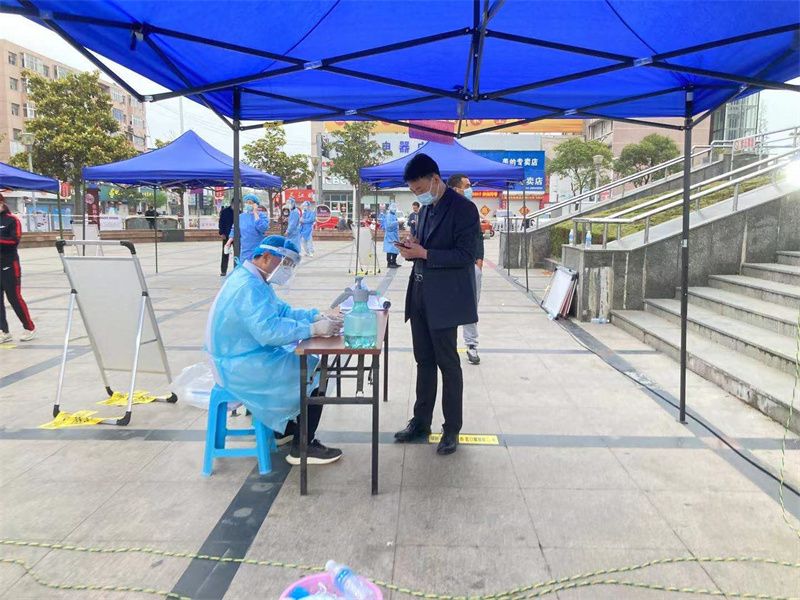 副院長(cháng)張文權下班后沒(méi)有回家,來(lái)到所負責的采樣點(diǎn),帶頭穿上防護服當起了志愿者,為采樣居民進(jìn)行信息登記。