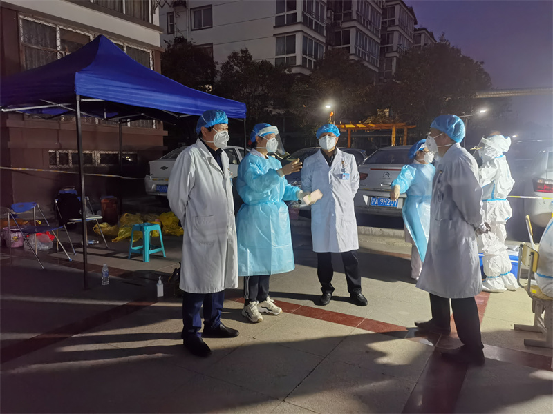 采樣人員匆匆吃了點(diǎn)午飯后,11點(diǎn)半便來(lái)到了各自的采樣點(diǎn),做好了奮戰到深夜的準備。中午,院黨委書(shū)記、院長(cháng)張心海及班子成員先后來(lái)到各個(gè)采樣點(diǎn)進(jìn)行督導,現場(chǎng)解決問(wèn)題。晚上7點(diǎn)多,院領(lǐng)導又一次來(lái)到各個(gè)采樣點(diǎn)進(jìn)行慰問(wèn)。