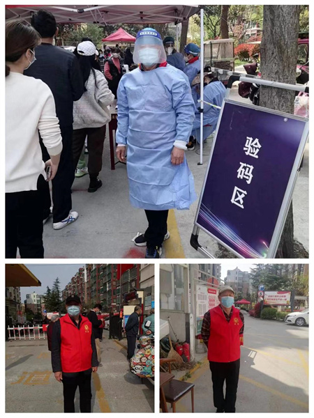疫情當前,責任在肩。作為酒店的一名老員工,六十多歲的李星宇在得知徐州疫情嚴重,主動(dòng)投入到社區防疫工作當中,“我的兒子兒媳作為醫生舍小家為大家,奮戰在疫情第一線(xiàn),深深地感動(dòng)了我。受孩子們的影響,我也加入了社區的志愿者隊伍。作為一名老員工,我要盡微薄之力,把關(guān)懷和愛(ài)心帶給社區居民,為社區服務(wù)責無(wú)旁貸?!崩钚怯蠲刻旆e極配合社區工作人員,一直忙忙碌碌,有時(shí)連水都顧不上喝一口,在社區門(mén)口搭棚,抬桌子,拉界線(xiàn),做消毒,粘貼一米界線(xiàn)等工作,為居民做核酸做好準備。社區通知7號早上5點(diǎn)要上崗到位,把小區外面的棚子拆除搬到小區里面,再重新搭好,在六點(diǎn)半之前要準備好檢測核酸的一切工作,盡管工作繁重,他沒(méi)喊過(guò)一聲苦,沒(méi)叫過(guò)一聲累。