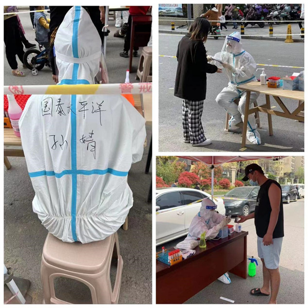 家是最小國,國是千萬(wàn)家。在疫情防控當下,有這樣一對夫妻,他們不計“小家”得失,以“大家”為重,夫妻雙雙下沉到抗疫一線(xiàn),她叫孫婧,是徐州國泰太平洋酒店的一名財務(wù)人員,“黨有召喚,我有行動(dòng)”這一直是孫婧這位新黨員的堅守。當徐州的疫情襲來(lái)之際,孫婧愛(ài)人是第一批“黃碼”人員,待黃碼轉為綠碼后,他們第一時(shí)間下沉到社區,將孩子托付給家中老人照看后,便毅然奔赴到抗疫一線(xiàn)。與社區工作者入戶(hù)逐一排查,幫助社區宣傳疫情防控政策,防疫常識等。即使云龍區綠碼暫停核酸檢測,夫妻二人依然積極地到重點(diǎn)區域參與核酸檢測的工作,與社區工作者入戶(hù)逐一排查,兩個(gè)人互相鼓勵,做彼此堅強的后盾。疫情無(wú)情,人間有愛(ài),疫情打亂了夫妻小家的節奏,卻讓黨性在這個(gè)時(shí)刻愈加熠熠生輝。