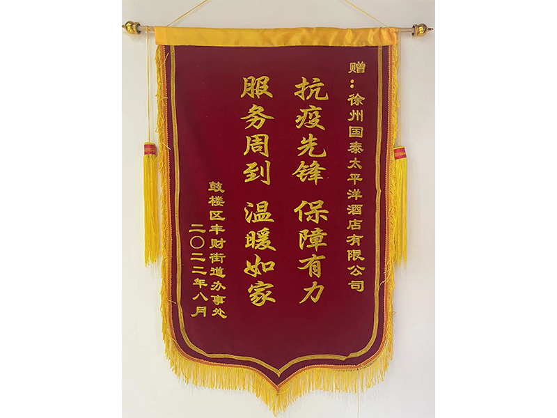 “不忘初心擔使命,同舟共濟抗疫情”。10月11日下午,鼓樓區豐財街道辦事處副主任代喃喃一行來(lái)到國泰太平洋酒店,為酒店送上了“抗疫先鋒 保障有力 服務(wù)周到 溫暖如家”錦旗,感謝酒店在疫情防控工作中給予社區的大力支持和做出的貢獻,酒店負責人孫路程代表酒店接過(guò)錦旗。