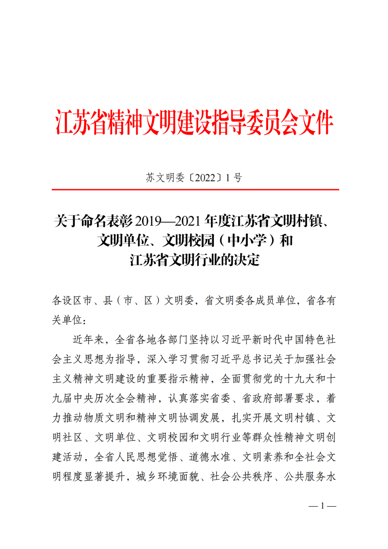 一、1月11日,徐州國投集團(本部)榮獲2019—2021年度“江蘇省文明單位”榮譽(yù)稱(chēng)號。