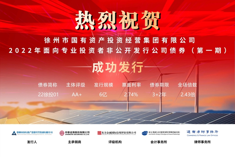 九、11月9日,徐州國投集團2022年面向專(zhuān)業(yè)投資者非公開(kāi)發(fā)行公司債券(第一期)成功發(fā)行,募集資金規模6億元,期限為5(3+2)年,票面利率為2.74%。作為徐州國投集團在資本市場(chǎng)上首次發(fā)行的債券,此次發(fā)行進(jìn)一步拓寬了公司的融資渠道,優(yōu)化了負債結構,降低了融資成本,邁出了從傳統融資方式向市場(chǎng)化融資方式轉變的關(guān)鍵一步,為后續在資本市場(chǎng)運用其他融資工具奠定了良好基礎。