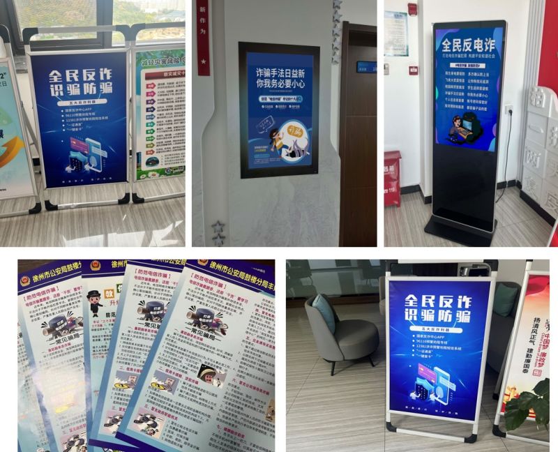 濃厚宣傳氛圍。建立反詐宣傳陣地,各企業(yè)在職工食堂、電梯口、宣傳櫥窗等多個(gè)陣地張貼反詐海報、播放反詐宣傳標語(yǔ),,積極構建全方位、多層次、多形式、多渠道的宣傳格局,最大限度擠壓電信網(wǎng)絡(luò )詐騙犯罪活動(dòng)空間。