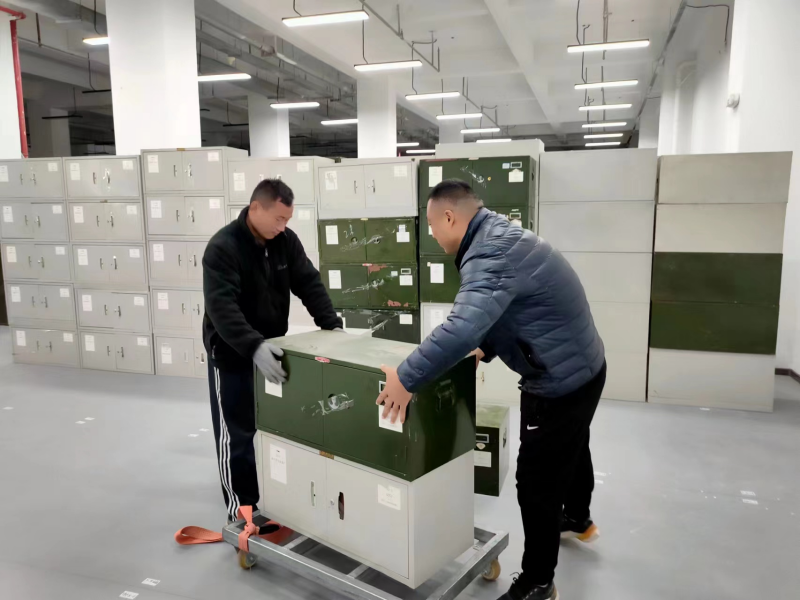 根據清點(diǎn)數據,按照全宗號順序,檔案管理中心全面梳理,分批次逐件核對、打包,逐柜張貼標簽,標明柜內數據;安排專(zhuān)人張貼密封條,標寫(xiě)流水編號,交叉檢查,逐間庫房逐個(gè)箱柜復核柜數,確保無(wú)誤;提前規劃出庫進(jìn)度表,制訂每日檔案搬遷計劃,做到檔案“一件不失,一頁(yè)不損,一卷不毀”。