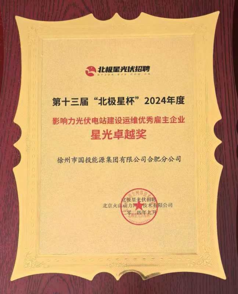 9月5日,在光伏行業(yè)備受矚目的“北極星杯”光伏影響力品牌評選中,能源集團合肥分公司脫穎而出,成功斬獲第十三屆“北極星杯”2024年度影響力光伏電站建設運維優(yōu)秀雇主企業(yè)星光卓越獎。