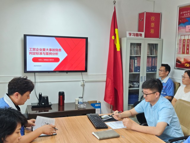 檢查組以“工貿企業(yè)重大事故隱患判定標準與案例分析”為主題,結合新亞公司企業(yè)實(shí)際,對“工貿企業(yè)重大事故隱患判定標準”“重大火災隱患判定方法”和“特種設備事故隱患分類(lèi)分級”部分條款進(jìn)行了解讀,并集中觀(guān)看了相應的警示教育片。