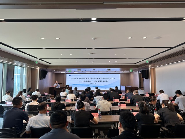 為深入貫徹落實(shí)國家“雙碳”戰略目標,加快推進(jìn)徐州市零碳園區建設。7月25日上午,由徐州市發(fā)改委主辦的“國家零碳園區和生態(tài)文明建設示范區(生態(tài)工業(yè)園區)政策培訓會(huì )議”在徐州國投集團召開(kāi)。會(huì )議特邀中國環(huán)境報社總策劃師、國環(huán)產(chǎn)研(北京)環(huán)??萍脊究偨?jīng)濟師翟濱,中國環(huán)境科學(xué)院高級工程師袁殷,國環(huán)產(chǎn)研項目總監陳天龍、技術(shù)專(zhuān)家張莎出席授課。市發(fā)改委二級調研員和相見(jiàn),徐州國投集團黨委委員、副總經(jīng)理王濤,市發(fā)改委、科技、工信、生態(tài)、商務(wù)等部門(mén)業(yè)務(wù)處室主要負責人出席會(huì )議,各地經(jīng)發(fā)部門(mén)分管和科室負責人,有關(guān)園區管委會(huì )分管負責人共計50余人參會(huì )。