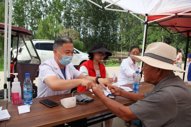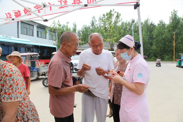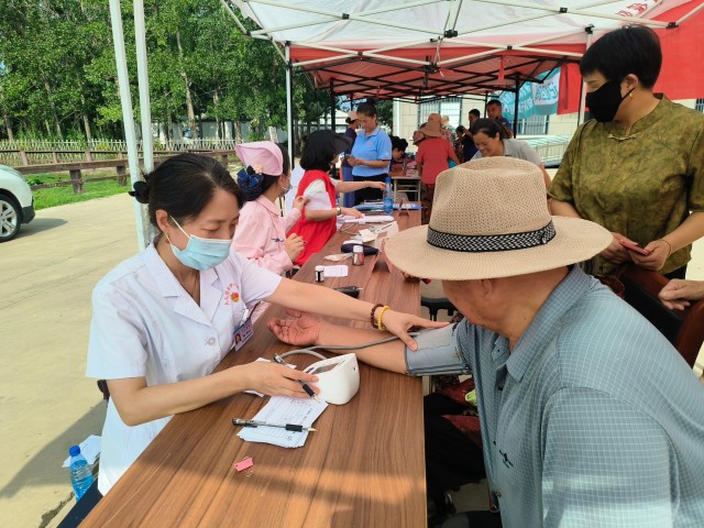 活動(dòng)當天,很多村民早已在活動(dòng)現場(chǎng)等候醫務(wù)人員的到來(lái)。醫務(wù)志愿者們迅速搭建起臨時(shí)服務(wù)臺,立即開(kāi)始為村民們免費測量血壓、血糖,細致檢查視力,并結合檢測數據開(kāi)展針對性健康指導,解答健康問(wèn)題咨詢(xún)。針對現場(chǎng)老年村民普遍存在的血壓偏高問(wèn)題,醫務(wù)人員重點(diǎn)講解了低鹽飲食、控制體重、規范用藥注意事項及情緒調節方法,條理清晰的講解讓村民們頻頻點(diǎn)頭。