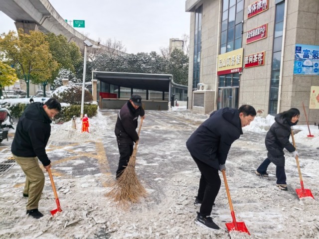行動(dòng)前,部門(mén)負責人員提前排查物資,備齊鐵鍬、掃帚、推雪板和融雪劑等工具,同步向辦公人員、小區業(yè)主及租戶(hù)發(fā)布防滑提示。作業(yè)過(guò)程中,團隊分區域高效推進(jìn),針對大廈出入口、辦公區域、地下車(chē)庫出入口、小區主通道,采用“人工清掃+融雪劑撒布”方式快速除冰清雪;對一樓租戶(hù)門(mén)前區域逐一清理,確保商戶(hù)正常開(kāi)門(mén)營(yíng)業(yè);同時(shí)對停車(chē)場(chǎng)坡道、消防通道等重點(diǎn)區域反復巡查,防止積雪二次結冰。
