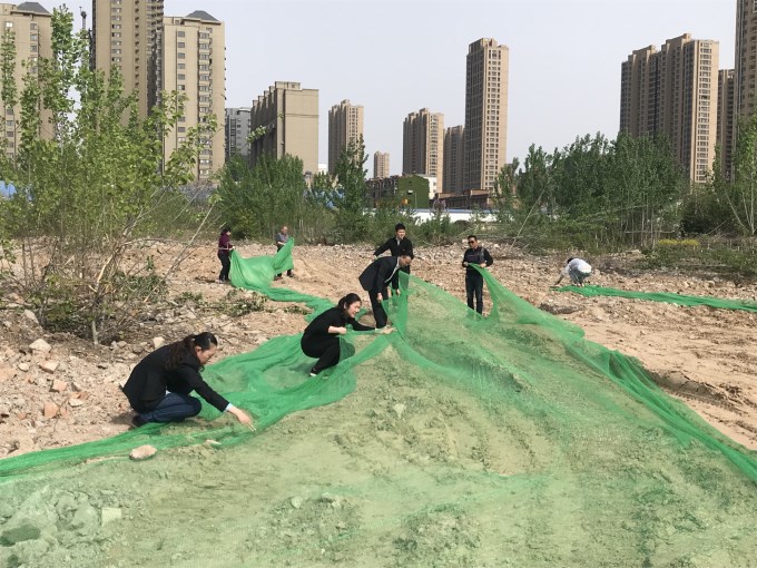 彭富黨支部書(shū)記肖明帶領(lǐng)全體黨員和入黨積極分子共12人來(lái)到義務(wù)勞動(dòng)現場(chǎng)。拆除區內垃圾,亂石遍地、塵土飛揚,地面高低不平,大家不畏困難、齊心協(xié)力,經(jīng)過(guò)兩個(gè)多小時(shí)的共同努力,將20余捆共計八千余平米的防塵網(wǎng)鋪設完畢,使原本塵土飛揚的拆除廠(chǎng)區煥然一新。