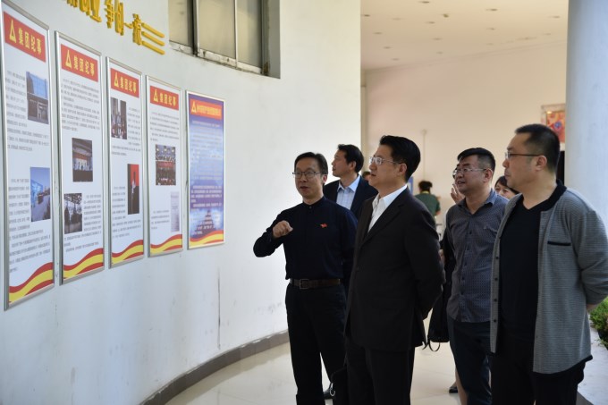 調研組首先觀(guān)看了海云電腦城、科創(chuàng )創(chuàng )業(yè)園、徐州古玩城、物華紡織品市場(chǎng)等集團公司授托資產(chǎn)室外宣傳展板。隨后觀(guān)看了“學(xué)習新時(shí)代”、“集團記事”、“華強黨建”、“分公司風(fēng)采”、“文化長(cháng)廊”等室內展板,對華強資產(chǎn)公司濃厚的黨建及企業(yè)文化氛圍給予充分肯定。