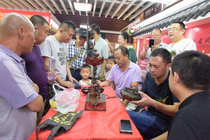 8月5日上午,喜愛(ài)古玩藏品的廣大愛(ài)好者齊聚在西楚霸王“秋風(fēng)戲馬”的戶(hù)部山東南麓,共同慶祝徐州古玩城開(kāi)業(yè)三周年。