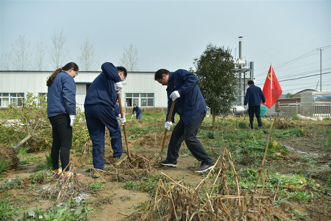 在植樹(shù)現場(chǎng),黨員干部自發(fā)分組,各有分工,有的揮鋤挖土,有的扶苗填坑,有的揮鍬培土,有的夯實(shí)土層,有的拎桶澆水,一絲不茍,干勁十足。經(jīng)過(guò)一番熱火朝天的勞動(dòng),一棵棵新栽的苗木迎風(fēng)挺立,傳遞著(zhù)春的生機與活力,也為遠大玻纖廠(chǎng)區內增添了一道亮麗的風(fēng)景線(xiàn)。