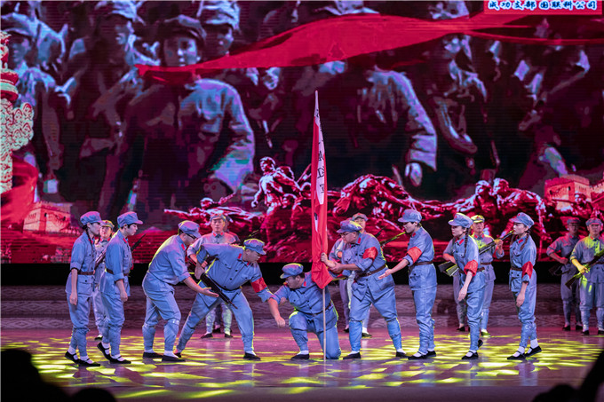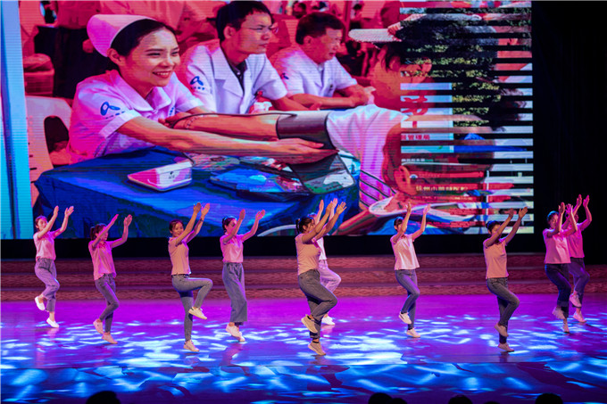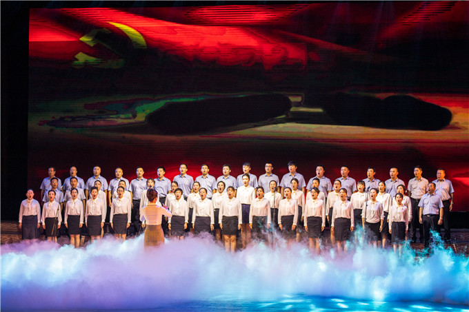 此次文藝匯演,是徐州國投集團“不忘初心、牢記使命”主題教育的重點(diǎn)舉措,所排節目全部為徐州國投集團內部職工自編自導自演,共有300多名員工參加演出。匯演以歌曲《紅旗飄飄》開(kāi)場(chǎng),高昂的歌聲引燃全場(chǎng)觀(guān)眾的愛(ài)國情懷,隨后的節目有舞蹈類(lèi)《母親是中華》《我和我的祖國》《洗手舞》《沂蒙頌·絨花》,歌曲類(lèi)《游擊隊歌》《我們都是追夢(mèng)人》《歌曲聯(lián)唱》《不忘初心》,樂(lè )器類(lèi)器樂(lè )小合奏《紅歌聯(lián)奏》、二胡獨奏《唱支山歌給黨聽(tīng)》、快板《筑夢(mèng)路上永向前》,詩(shī)朗誦《歌頌祖國》《同心共筑中國夢(mèng)》,表演類(lèi)情景劇《守護》《四渡赤水出奇兵》《頌清風(fēng)·貫古今》、小話(huà)劇《民兵也是兵》、京劇選段《人民的安危冷暖時(shí)刻掛心上》、快閃《我和我的祖國》,最后在大合唱《祖國不會(huì )忘記》中結束。所有節目主題鮮明,形式多樣,內容豐富,表演水平高,給現場(chǎng)觀(guān)眾帶來(lái)了視聽(tīng)盛宴,為新中國成立70周年獻上了濃濃的國投祝福。