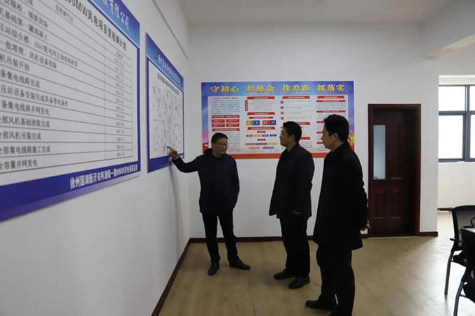 在新沂市阿湖鎮,高翔實(shí)地調研了國湖公司一期90MW風(fēng)電項目升壓站建設情況,詳細了解了國湖公司風(fēng)電項目投資規模、投資收益、各項工作進(jìn)度等情況,并在新沂市阿湖鎮便民中心開(kāi)展座談交流。高翔指出,徐州國投集團作為市屬產(chǎn)業(yè)投資集團,企業(yè)發(fā)展勢頭較好、產(chǎn)業(yè)投資積極向上、員工拼搏干勁十足,在產(chǎn)業(yè)投資上取得了一定的成績(jì)。國湖公司投資的新沂市阿湖鎮一期90MW風(fēng)電項目作為可再生新能源行業(yè),投資規模較大,要重點(diǎn)做好如下四項工作:一要強化黨的建設。國湖公司作為徐州國投集團的三級企業(yè),要按照“國有企業(yè)經(jīng)營(yíng)到哪里、黨組織就跟進(jìn)到哪里”的原則,著(zhù)重加強企業(yè)黨組織建設,強化黨組織的政治引領(lǐng)、思想引領(lǐng)、組織引領(lǐng),要將國湖公司黨的建設與風(fēng)電項目施工相互融合、相互促進(jìn),要接好“全面從嚴治黨壓力傳導層層壓緊壓實(shí)”這個(gè)接力棒。二要強化作風(fēng)建設。國湖公司作為產(chǎn)業(yè)投資的執行者,要更加堅決貫徹落實(shí)中央八項規定精神,進(jìn)一步強化班子領(lǐng)導的帶頭表率作用,推動(dòng)落實(shí)中央八項規定和實(shí)施細則精神常態(tài)化、長(cháng)效化;要從小事抓起、從小處著(zhù)眼,思想上繃緊弦、行動(dòng)上管住腿,堅決做到不違規、不逾矩。三要強化流程意識。國湖公司要按照國有資產(chǎn)保值增值的要求,依規依法做好國有資產(chǎn)的管理工作;要嚴格按照“三重一大”實(shí)施辦法要求,強化黨的研究前置程序,進(jìn)一步規范投資決策流程,確保做到信息透明、標準規范。四要壓實(shí)“兩個(gè)責任”。國湖公司要認真組織學(xué)習市委常委、市紀委書(shū)記、監委主任董向陽(yáng)的重要批示精神,要結合“不忘初心、牢記使命”主題教育檢視問(wèn)題環(huán)節要求,重點(diǎn)圍繞“一違三亂兩高兩低”開(kāi)展全面自查自糾和專(zhuān)項整改落實(shí),進(jìn)一步轉變思想觀(guān)念、提高政治站位,進(jìn)一步健全組織、理順關(guān)系、配齊人員,推動(dòng)黨的建設向縱深發(fā)展。